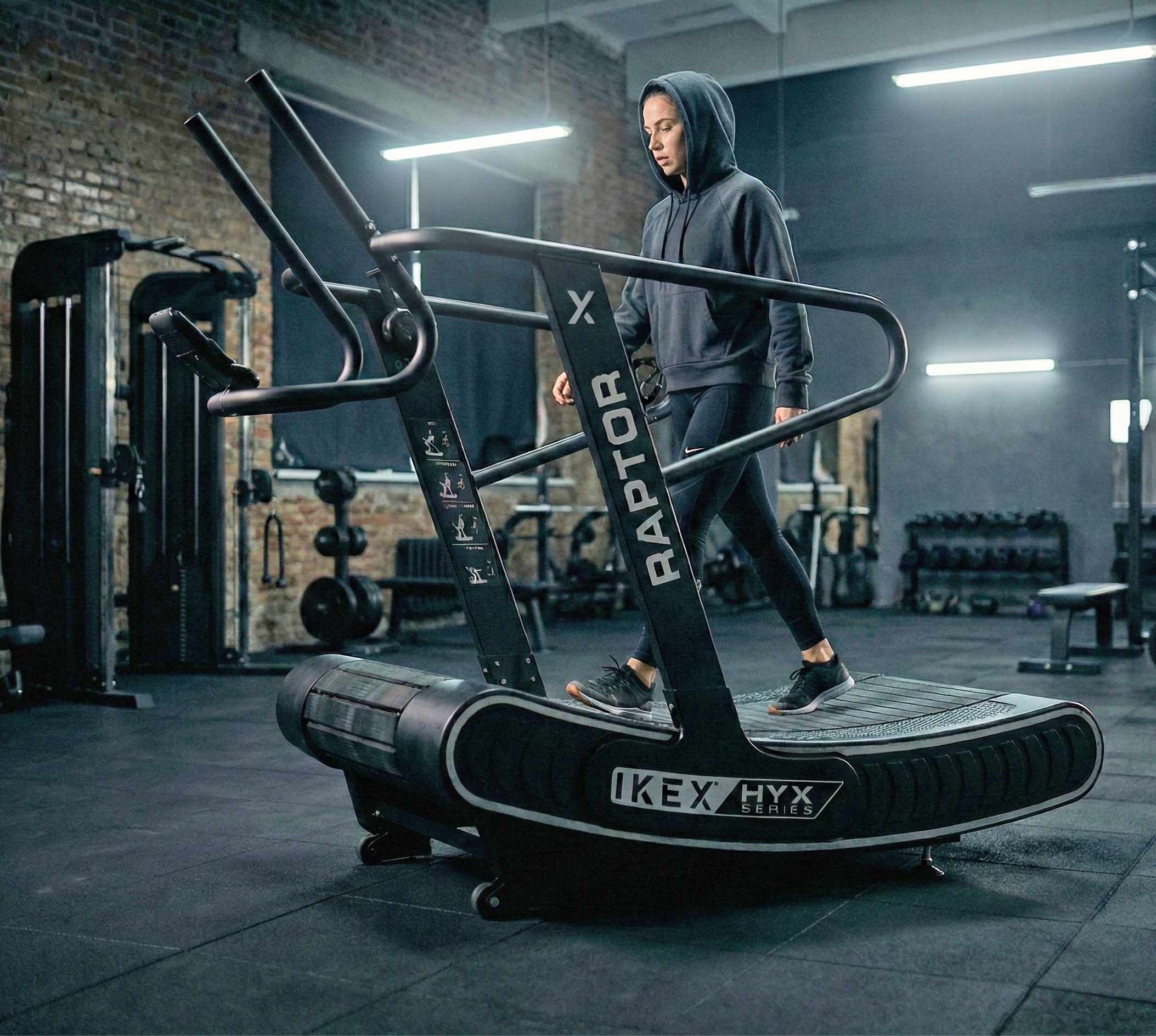 Entrena al más alto nivel con la Cinta de Curve HYX Raptor IKEX, una cinta de correr sin motor diseñada para HIIT, cardio avanzado y preparación de carrera. Permite trabajar empuje, tracción, resistencia y velocidad con total control del movimiento.