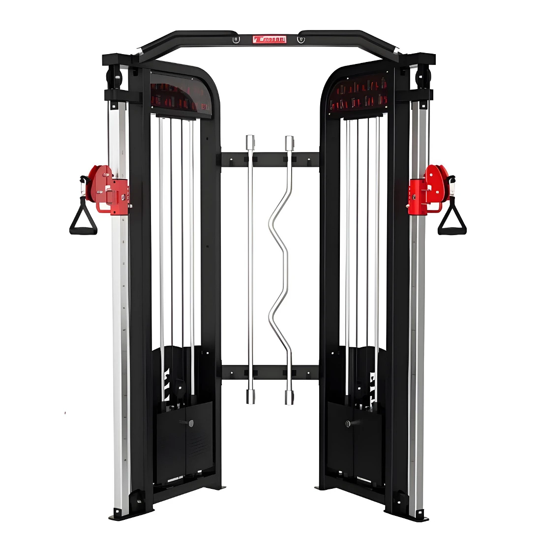 Estación de doble polea regulable IKEX para entrenamiento funcional y de fuerza, equipada con torres de peso de 100 kg por lado y sistema de poleas 1:1. Construida en acero estructural y diseñada para uso profesional intensivo en gimnasios y centros de alto rendimiento.