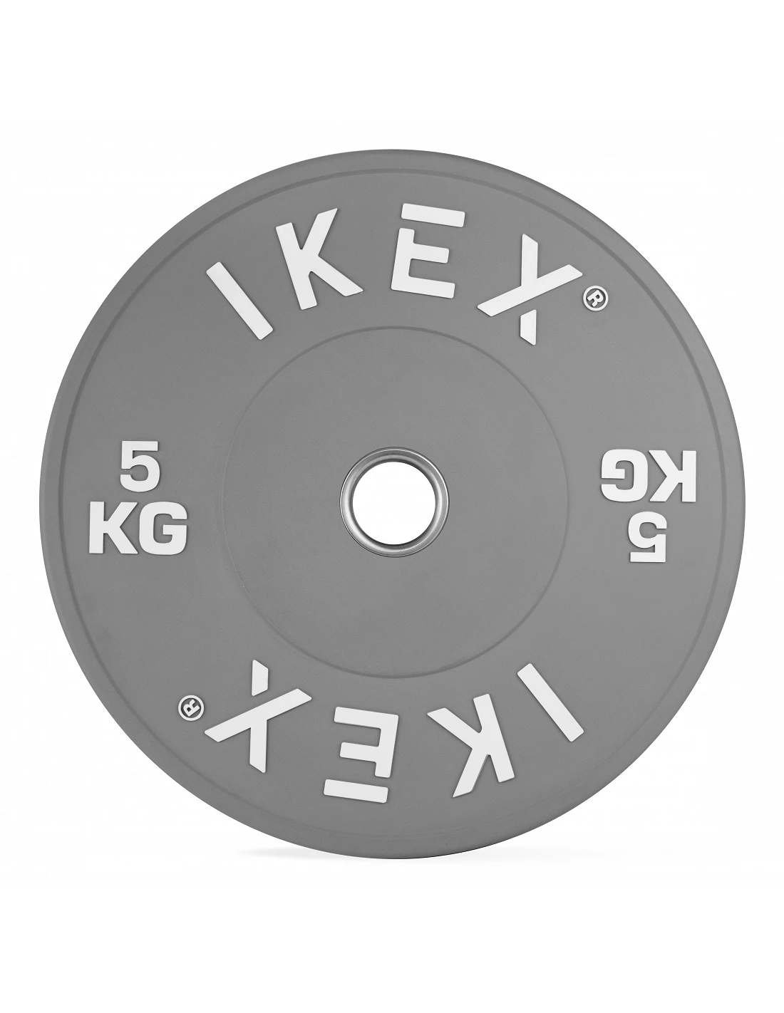 El Disco Bumper Training Color IKEX está fabricado en caucho natural + SBR, con una dureza de 88 Shore A, inserto de acero inoxidable con reborde (up-turned) fijado mediante press-fit y vulcanizado, y diámetro estándar de 450 mm. Diseñado para entrenamiento funcional y uso profesional, con codificación de color por peso y control de peso en proceso de fabricación.
