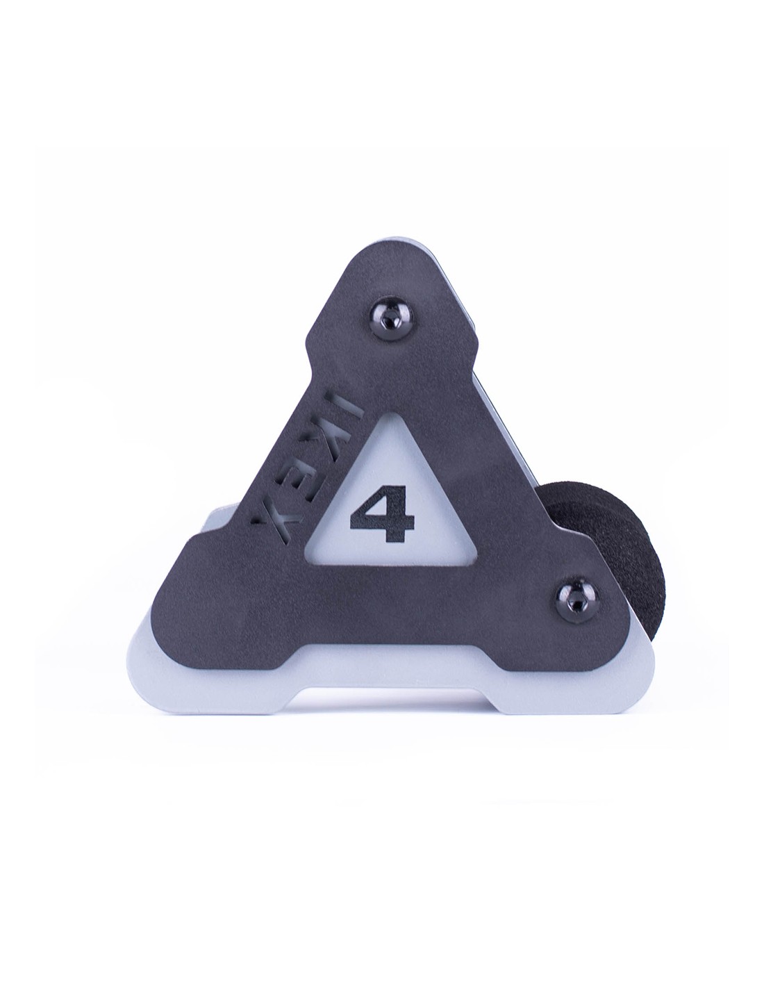 Mancuerna técnica de diseño triangular con mango giratorio, creada para optimizar la activación estabilizadora.